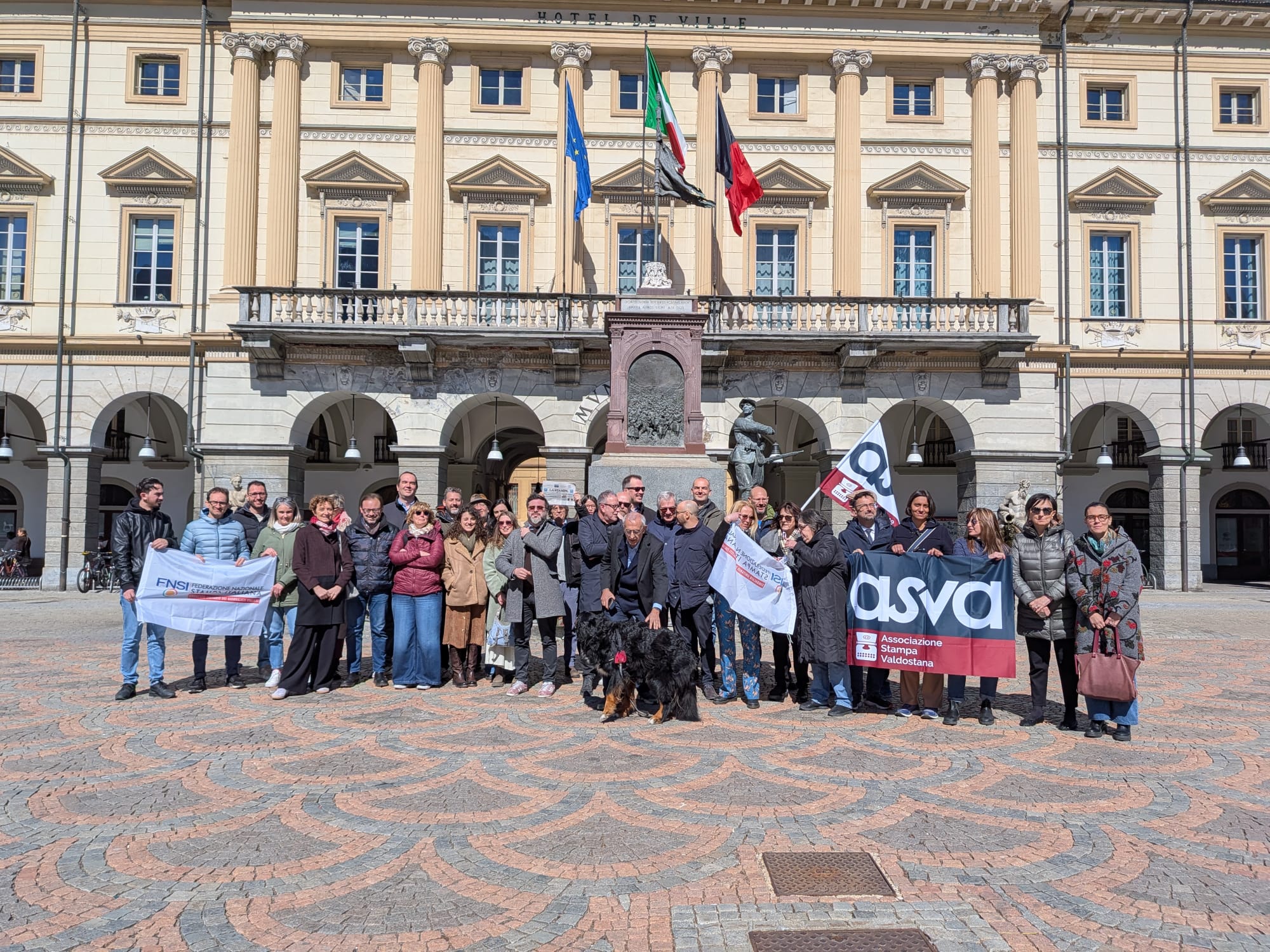 Giornalisti in piazza Chanoux lo scorso 27 marzo